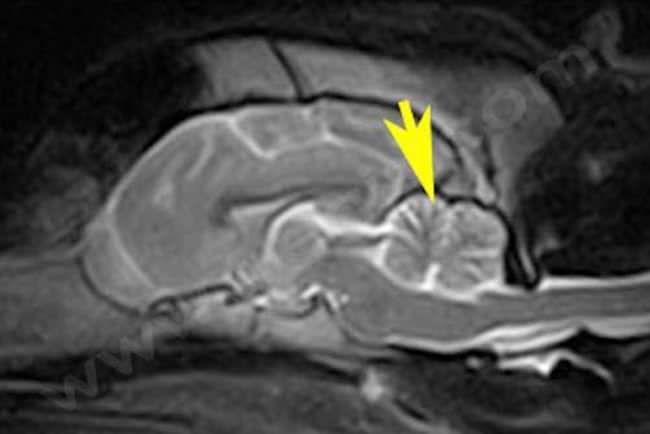 Selon les races, on pense le plus souvent que l’origine de la dégénérescence cérébelleuse est héréditaire, notamment pour les formes apparaissant tôt au cours de la vie comme chez : Beagle, Border Collie, Caniche miniature, Colley à poil dur, Coton de Tulear, English pointer (males uniquement), Jack Russell Terrier, Kerry Blue terrier,
