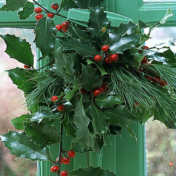 Le houx (Ilex aquifolium) est un arbuste très fréquent dans les haies, les parcs et jardins. Il est également très utilisé en décoration notamment pendant les fêtes de fin d’année. Il existe des variétés à feuilles vertes mais aussi panachées.